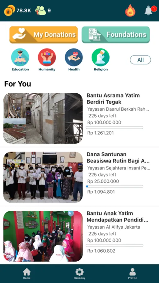 - 5% biaya Administrasi yang terkumpul di Program Charity MyHarmony