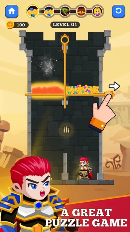 Do you like adventures? Of course, they are great. Help the hero rescue the princess and win the treasure. Pull the sticks to make a safe path to the princess. You will become a rich hero in this latest rescue game.