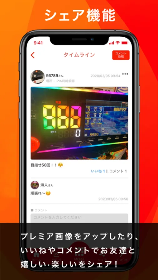 ・「シェア」機能で遊技中のプレミア画像や大当たり回数をお友達と共有可能