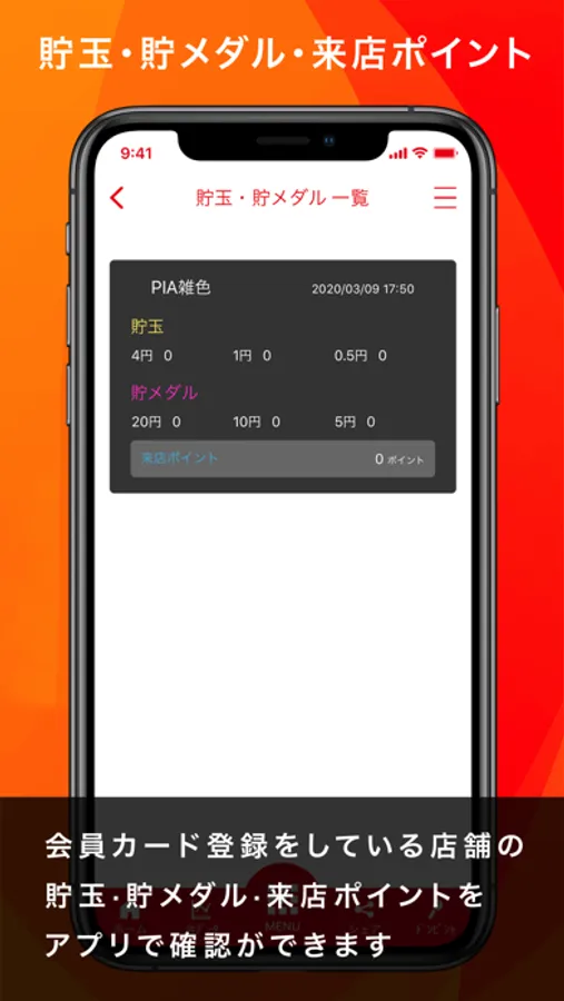 ・会員登録している店舗の貯玉数、貯メダル数、来店ポイント数が閲覧可能
