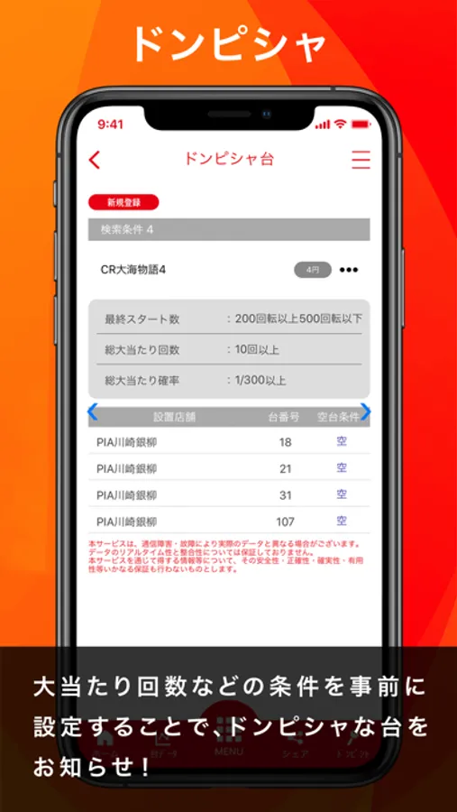 ・自分のお好み条件を設定して、条件に合った遊技台を通知する「ドンピシャ」機能