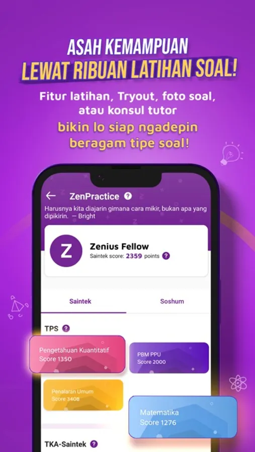 Bersama Zenius Aktiva, kamu dapat belajar dengan berbagai fitur menarik seperti video belajar materi pelajaran sekolah, kumpulan soal beserta kunci jawabannya dan juga video pembahasan soal. Selain itu, ada juga Zenius Aktiva UTBK yang menawarkan fitur Tryout UTBK dan pembahasan soal UTBK dari tahun ke tahun untuk menambah pengalaman belajarmu.
