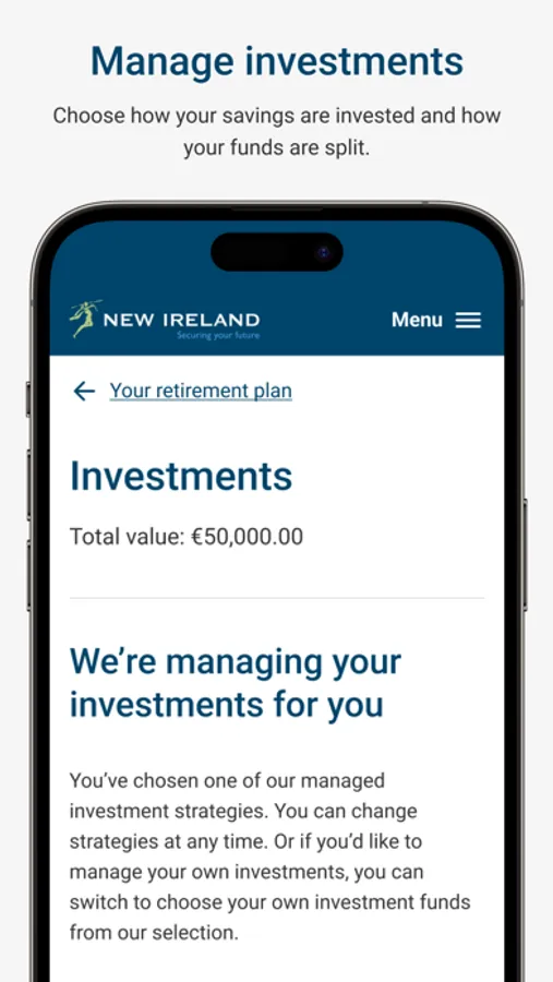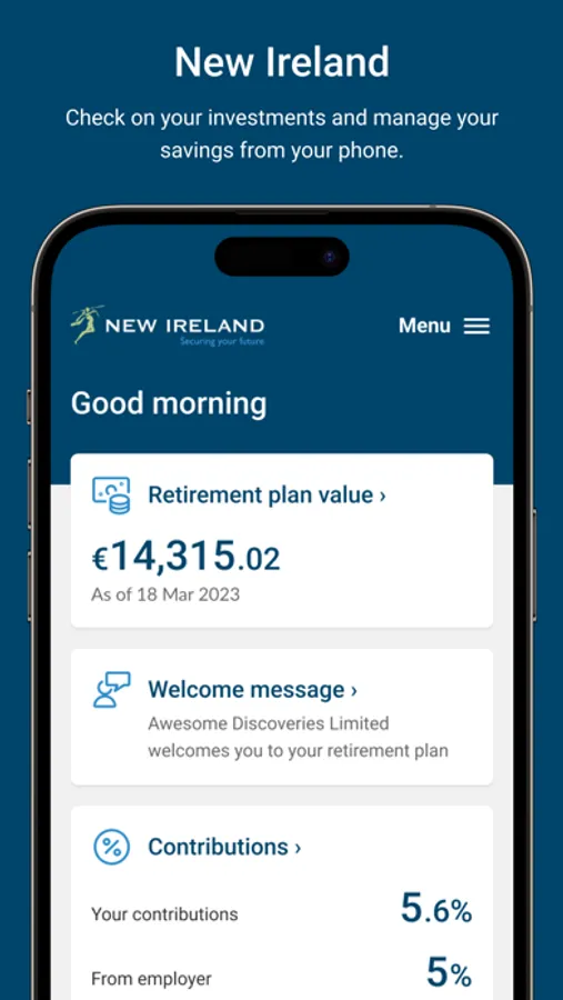 The New Ireland Assurance Employee App will transform the future of retirement savings for a new generation. It allows you to pick and choose the most suitable investment funds, track your pension balance in real time on your phone and increase contribution levels when you can afford it. Engaging you with your retirement plan like never before!
