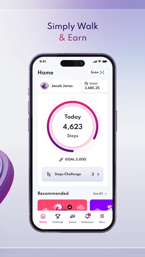 Customize your daily steps goal based on how active you are! Each time you hit a goal, you earn rewards.