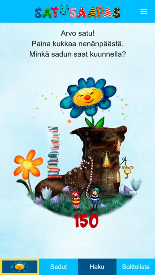 Hyppää mukaan sadun maailmaan! Voit ladata ilmaisen kokeiluversion sovelluskaupoista. Ja jos… ei vaan KUN ihastut satuihin, voit ostaa satuja 30 saappaan paketeissa, tai vaikka kaikki 150 satua kerralla.