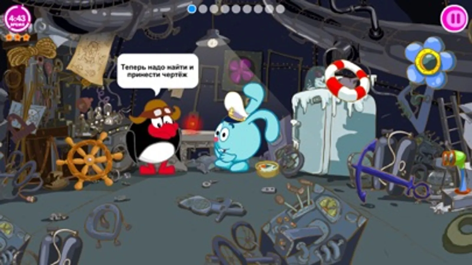Ты любишь мультики про Смешариков? Замечательно! Теперь можно совместить приятное с полезным! Игра "Смешарики. Сокровища" - это не только развлечение и захватывающее приключение, но и увлекательные игры на реакцию, логику и внимание! Вместе с Крошем, Ёжиком, Нюше и Пином тебе предстоит построить подводную лодку и отправиться в подводное путешествие на поиски пиратских сокровищ! Удастся ли Смешарикам их экспедиция и чем она закончится? Чтобы узнать это, скорее устанавливай игру и включайся в приключение!