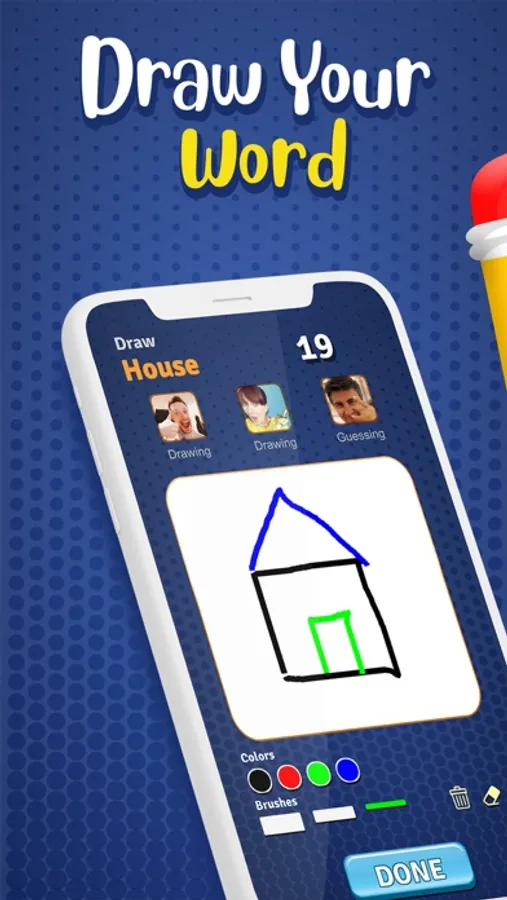 In Draw with Friends, you'll play with other players online, drawing words and guessing what other players have drawn. With two different game modes, you can choose to compete against three other players in real-time or challenge one opponent to a classic 1v1 match.