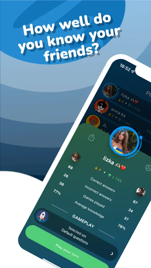 Do you already know everything about your friends, family, and partner? Want to find out something new? Or maybe you just want to have fun? Our app will give you unforgettable moments with your friends, full of laughter and joy.
