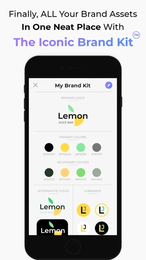 • Finally, keep all your brand assets in one neat place with the Iconic Brand Kit™