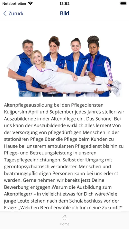 Die Unternehmensgruppe der Pflegedienste Kuijpers ist ein privater Anbieter sozialer Dienste im Kreis Heinsberg und der Städteregion Aachen. Unsere Dienstleitungen im Bereich der Alten- und Krankenpflege erstrecken sich von der Pflegeberatung über die Ambulante Pflege, das Betreute Wohnen, die Intensivpflege, die Tagespflege bis hin zur vollstationären Pflege in einer unserer Pflegeeinrichtungen.