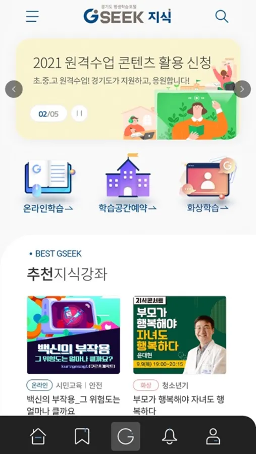 경기도와 31개 시·군에서 함께 운영하는 온라인평생학습플랫폼 지식(GSEEK) 하루10분, 자기개발의 첫 걸음!