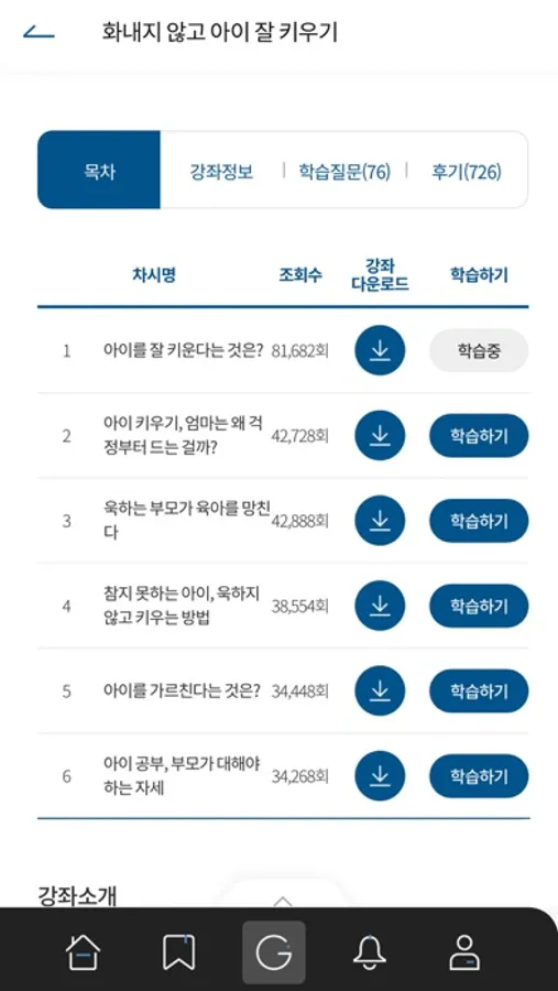 - 게시판(공지사항, 묻고 답하기, 이벤트, 학습 후기 등)