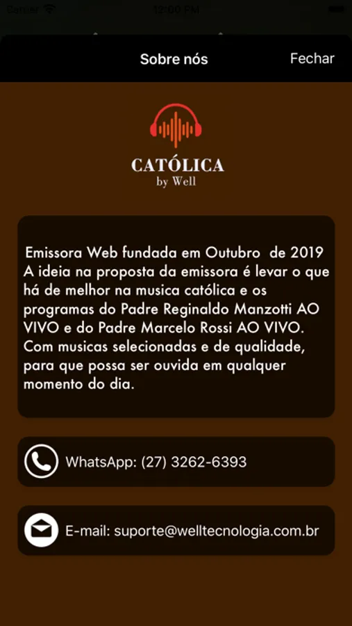 A ideia na proposta da emissora é levar o que há de melhor na musica católica e os programas do Padre Reginaldo Manzotti AO VIVO e do Padre Marcelo Rossi AO VIVO.