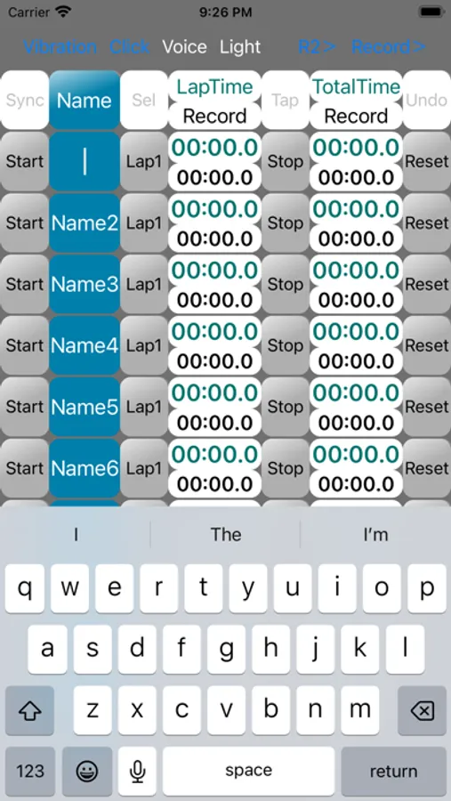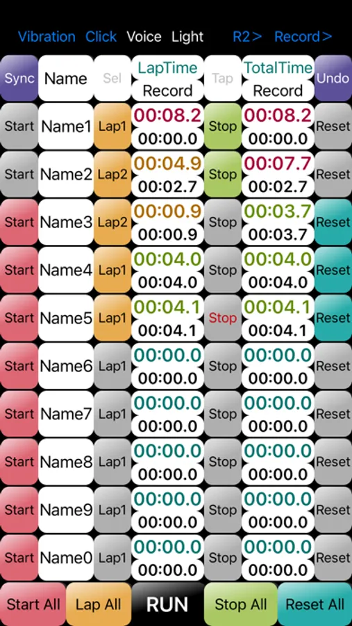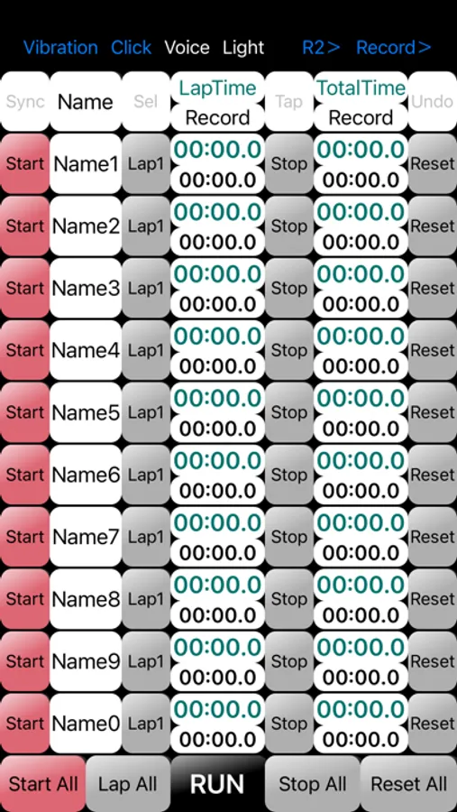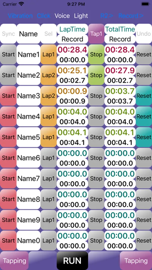 The tapping mode allows you to tap first and then assign the tapping operation to any button on the stopwatch.