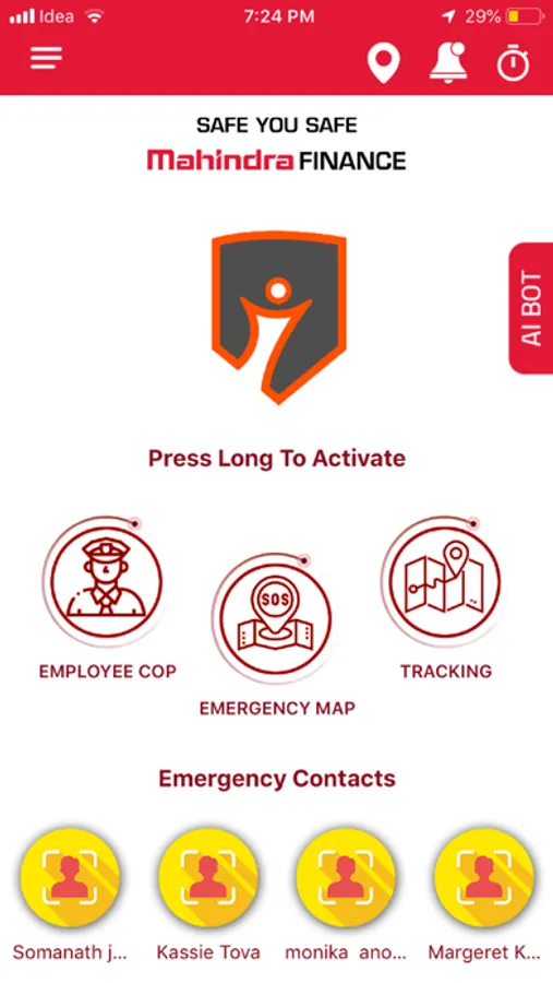 Raising the bar of safety services. Bringing you easy access to locate nearby emergency services like hospitals, police stations, fire stations or your nearest Mahindra Finance Branch and the safety ambassador for help across India.