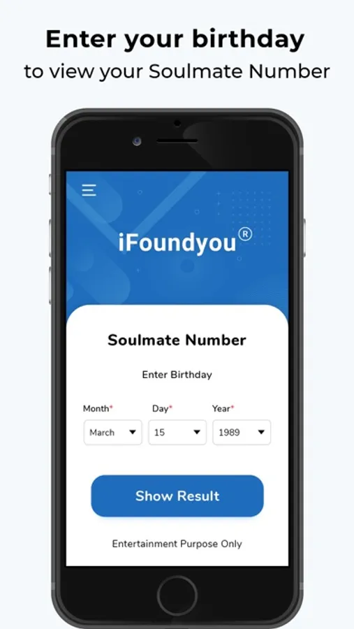 Now enter your birthday to find your Soulmate Number. Be sure to check out ifoundyou Soulmate Checker and ifoundyou.com, the only dating site that matches persons by one's Soulmate Number.
