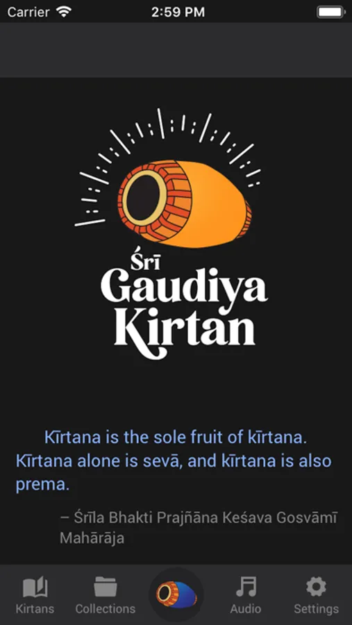 It is our hope that this app will be a place that stimulates confidence in those who are hiding, too shy to come out and sing aloud while chiming kartālas; that entices those who are standing at a distance, looking on with curiosity, to participate; and that provides companionship for those who have embraced the life of kirtan.