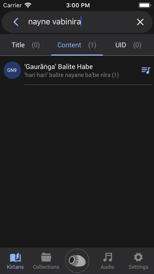 Whether you type “suda vakta” or “shood bakat”, you’ll still be able to find the song Śuddha-bhakata. You’ll have to try hard to type it wrong enough for the search not to find it. The results appear immediately as you begin typing.