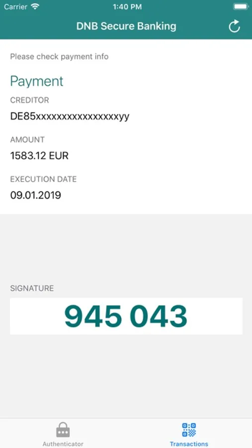 The new payments feature makes it easy and secure to authorize orders and payments. Before a transaction is authorized, a QR code is displayed. Just scan the code in your DNB Luxembourg app. This immediately generates a transaction number that you can use to release the order.