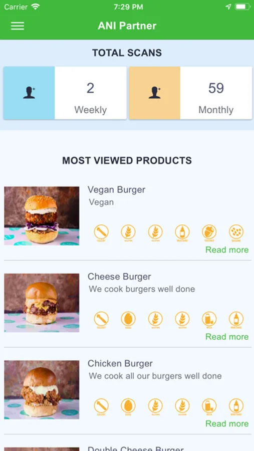 using the ANI app. The app will provide users a detailed and informed recipe nutrition and allergen