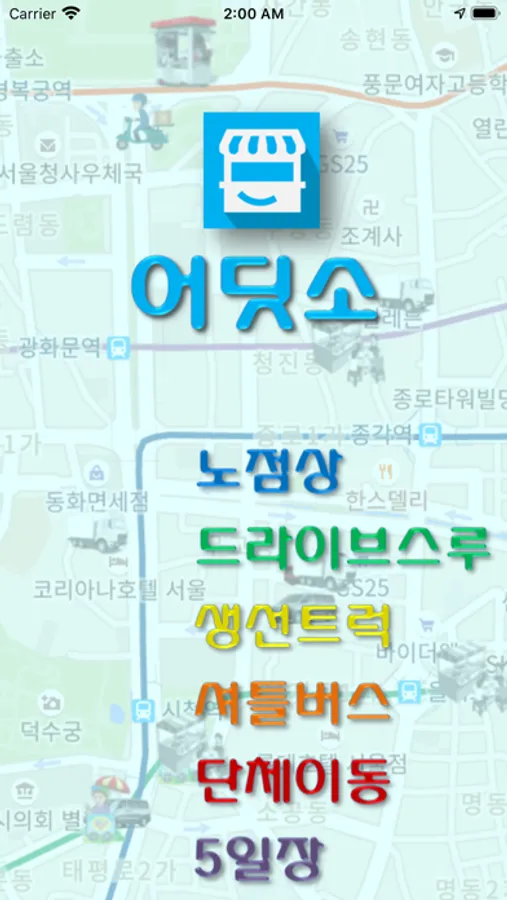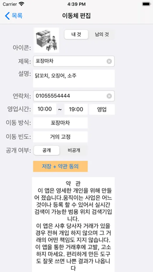 이동형 사업, 움직이는 비지니스에 영업장을 지도로 검색할 수 있도록 노출하며, 연락을 취할 수 있습니다.