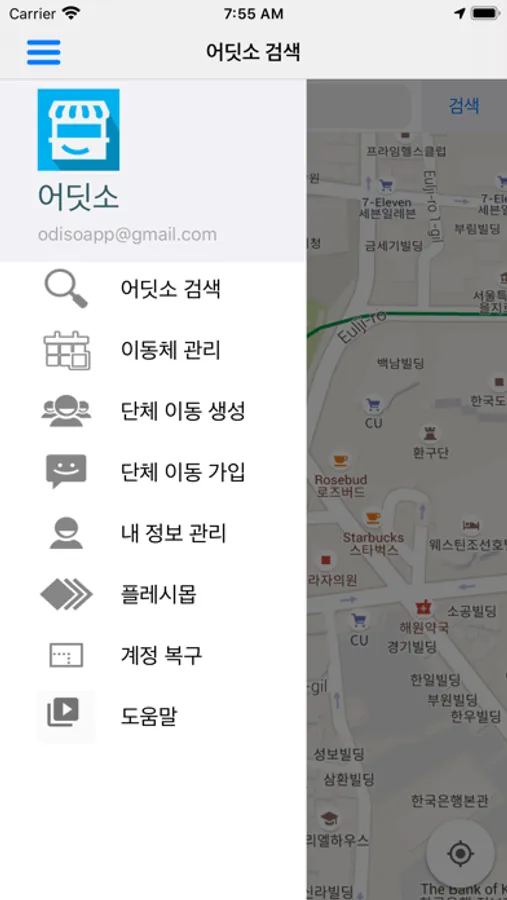 이앱은 위치를 활용한 범용 툴 입니다. 포장마차나 노점상, 드라이브스루 및 각종 이동 하는 업체를 등록 하면 변경된 위치로 검색이 됩니다. 셔틀버스나 카풀 등록도 회원제로 미공개 할 수 있으며, 단체여행등 이동시 서로 단체 소속원 끼리만 검색이 가능 합니다.