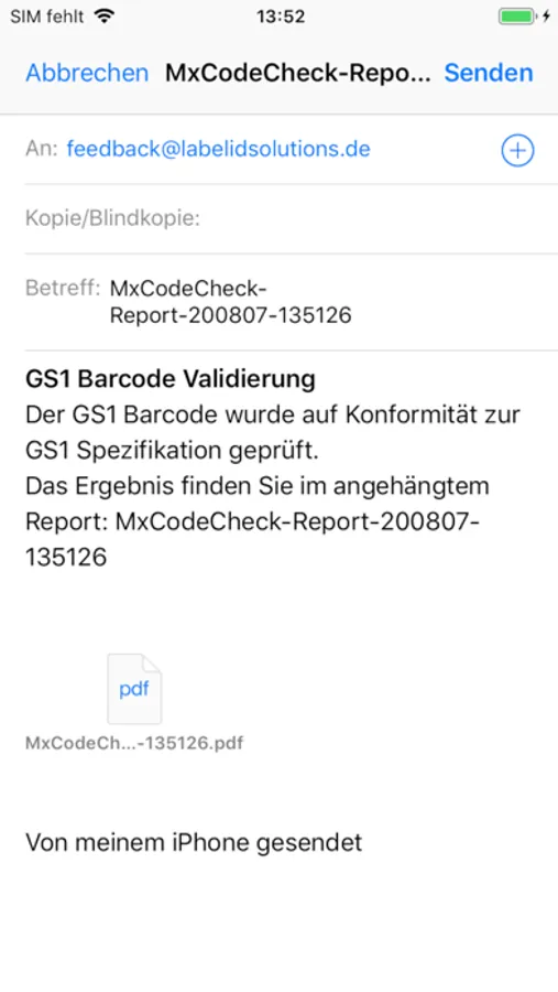 Important note: This app only works in conjunction with the scanners of the Cognex MX series. For normal iPhones and iPads, please use the Barcode-Check app!