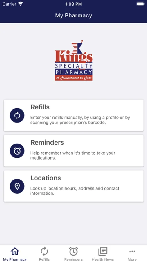 The Kings Pharmacy app allows you and your family to securely communicate with your local pharmacy. Refill your prescriptions with one click, get refill reminders, get discounts at your local pharmacy, get savings on brand drugs and access Pharmacist written pages that help you understand your condition or medications.