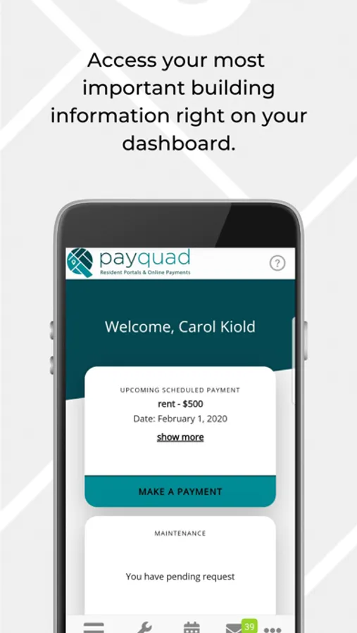 My Portal by Payquad Solutions gives residents/ tenants access to all their information really easily. Being in the know at all times and taking care of what needs to be done wherever you are at any time.