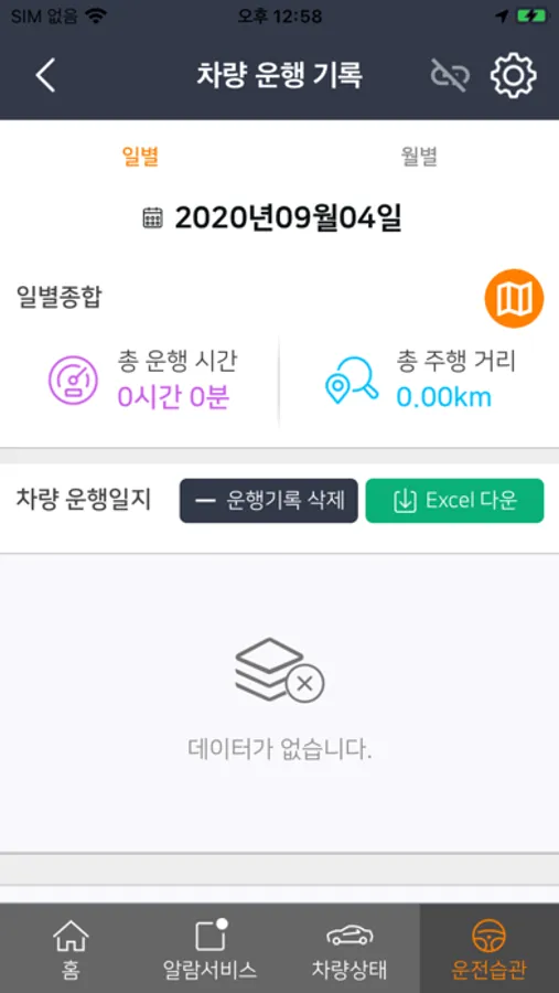 NB-IoT 동글을 통해 일별, 월별 주행 기록을 조회 할 수 있습니다.