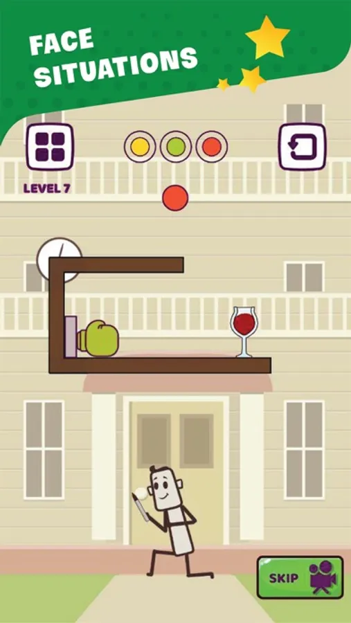 Drop the ball to spill the glass and stop the stickman from ruining things.