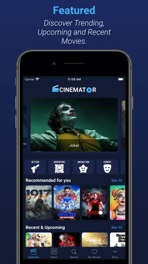• Browse movies by Genres, Recommended, Upcoming, iMDB's Top-rated etc.