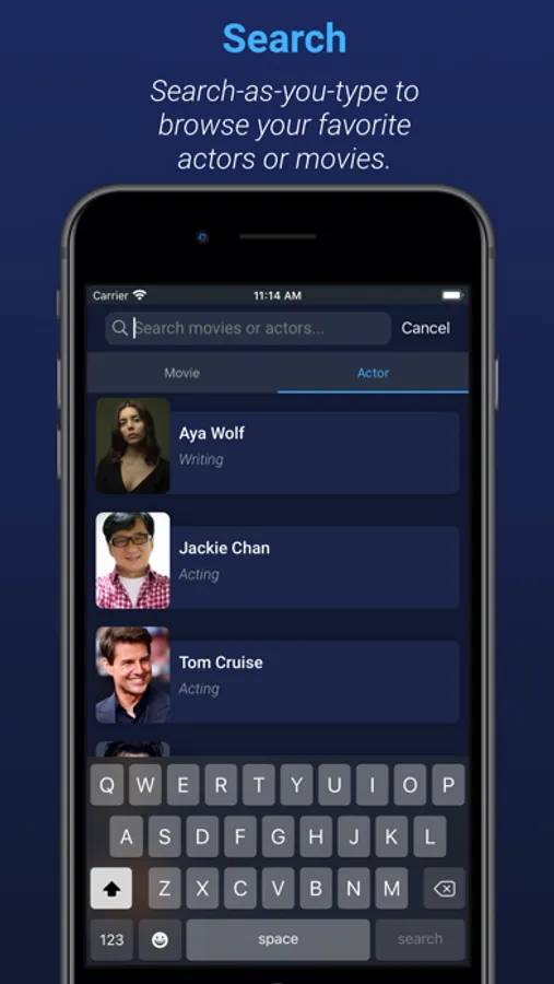 • Cast profiles. Learn more about your favorite actors/directors and browse their movies.