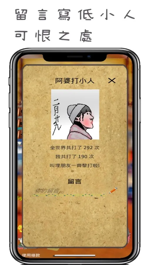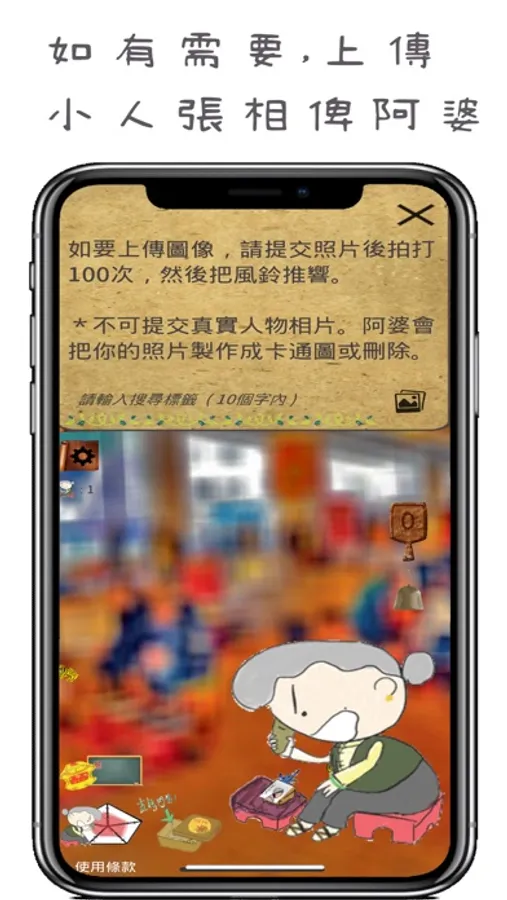1) 阿婆打小人只作休閒使用,應用程式內不宜把真實相片上載來打小人,只能使用抽像模糊的卡通或油畫化圖片。