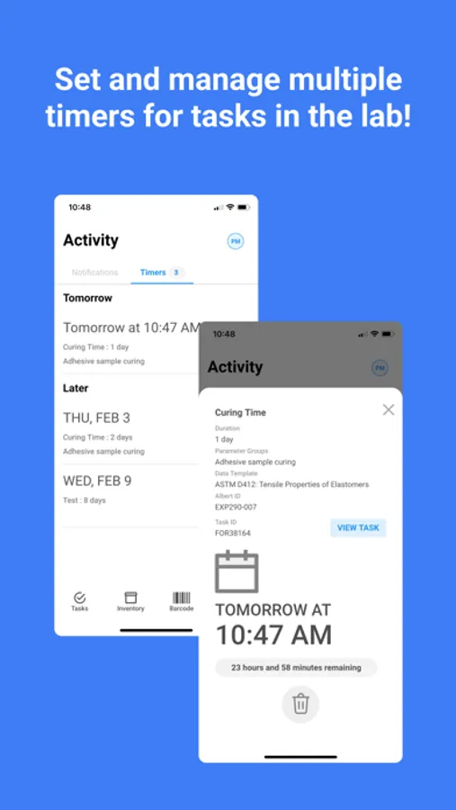 No more scanning documents – now you can upload files, picture, or videos directly to tasks or inventory items. Use the barcode feature to quickly open any item in your laboratory.