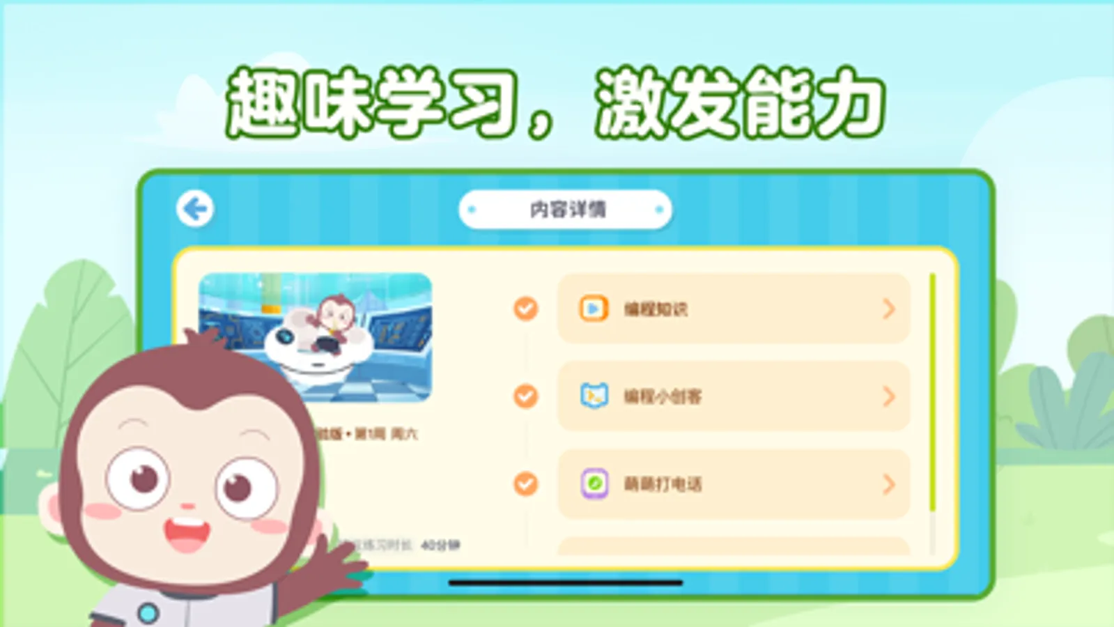 遵循中国孩子年龄特点,自然融入计算机、生物、音乐、运动等跨领域科普知识,用趣味保护孩子的想象力,激活孩子的创造力,并通过培养孩子的编程能力、思维能力、自主能力、问题解决能力、创新能力以及信息科技素养,陪伴孩子走好成长的关键一步。