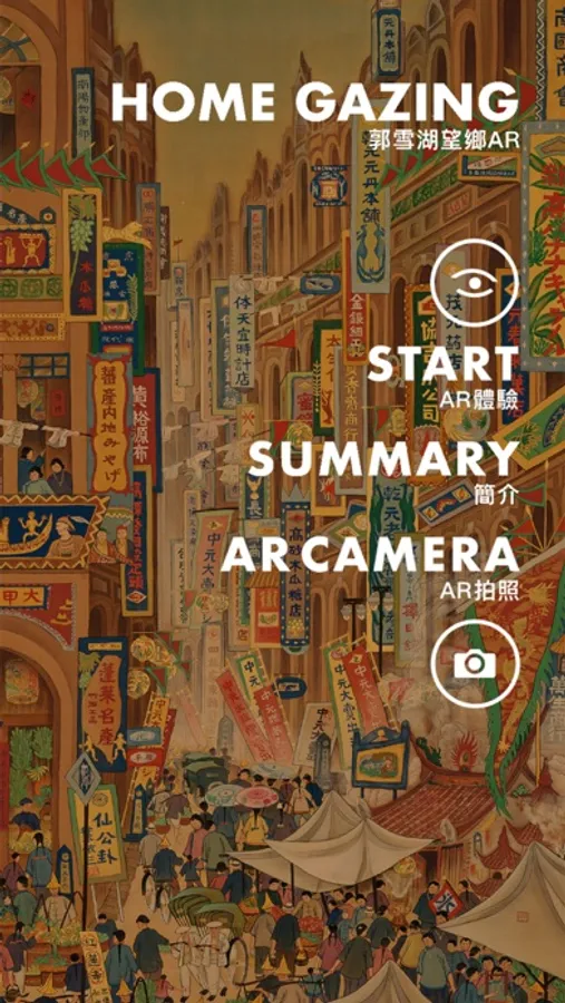 Using AR technology to make acrylic painting of Kuo Hsueh-Hu's "Festival on South Street" in 1930, user could experience 1 to 1 scale AR at home.