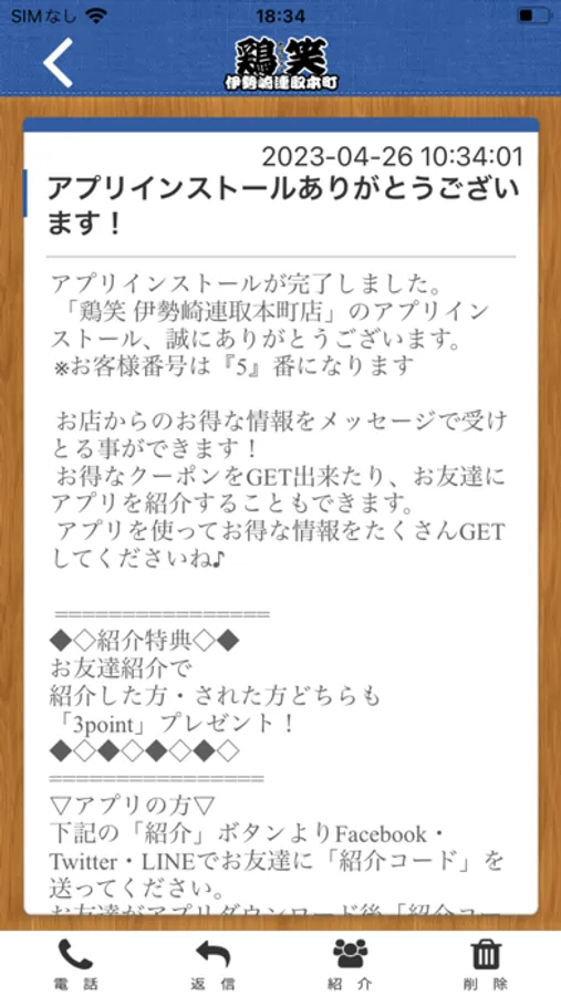 鶏笑のアプリをSNSを通じてお友達に紹介する事ができます。