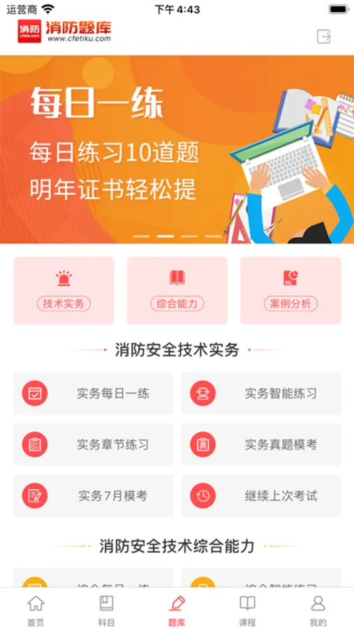 消防考试网APP是一款集一级消防工程师考试资讯、培训课程、习题练习等于一体的在线学习平台。