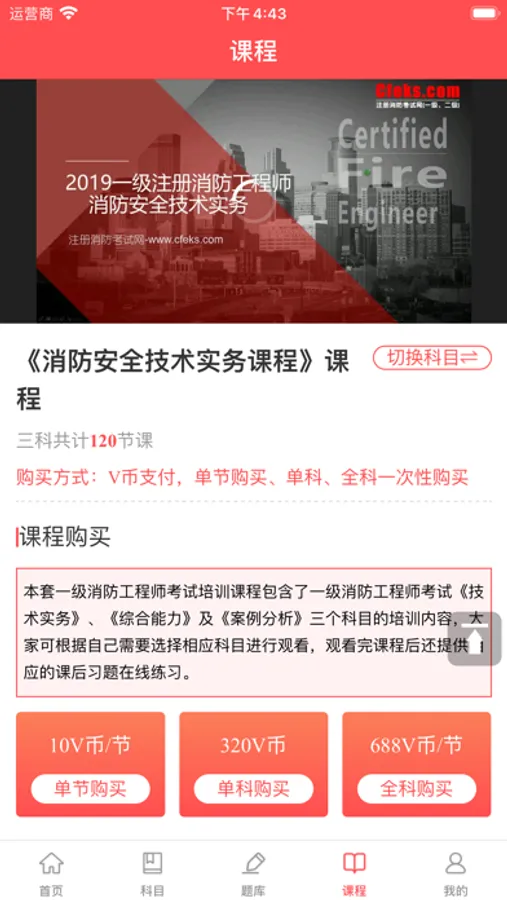 【培训课程】《技术实务》《综合能力》《案例分析》三科视频精讲,单节购买仅需10元,单科购买免费赠送消防题库季度VIP(价值60元),全科购买免费赠送消防题库年度VIP(价值240元).