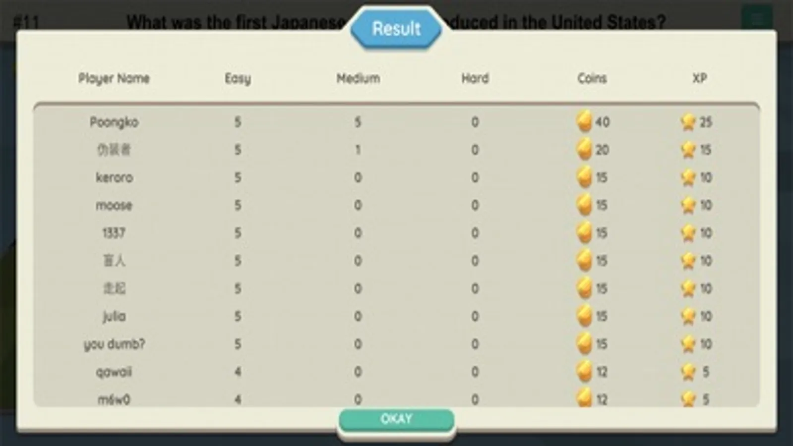 Game start with 32 players. Keep answering correctly to survive. Show off your smartness and watch your opponents die around you!