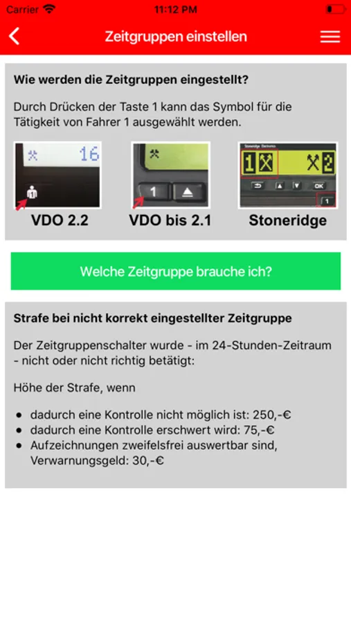 Auch die korrekte Einstellung und Auswahl der Zeitgruppe wird dem Fahrer durch eine Frage-Antwort-Simulation erleichtert.