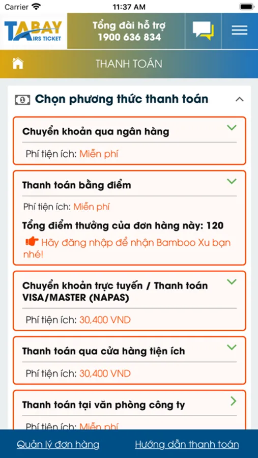 3. TABAY AIRTICKET Có Phương Thức Thanh Toán Linh Hoạt