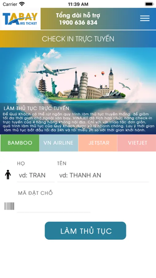 + Hỗ trợ Làm Thủ Tục Trực Tuyến Vietnam Airlines, Vietjet Air, Jetstar, Vinpearl Air và cả Bamboo Airways nhánh chóng, tiện lợi.