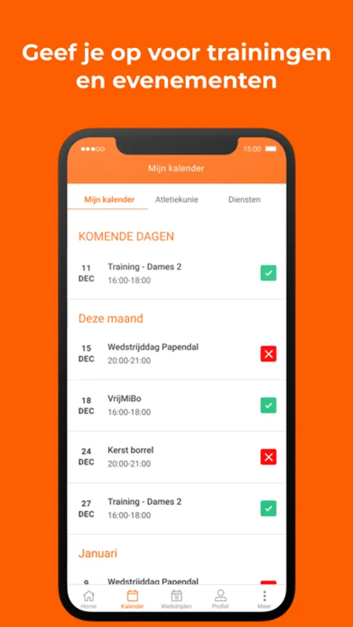 - Geef jouw aanwezigheid door voor wedstrijden, trainingen en evenementen.