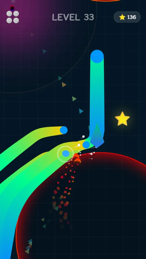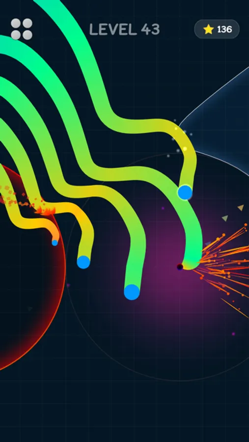 Follow a fun and entertaining journey of a particle reaching its target by creating chain reactions. Create beautiful visuals while playing in soothing and relaxing environment. Play 45 unique and carefully crafted levels and reach final level which is 3D version of the game with non-ending gameplay.