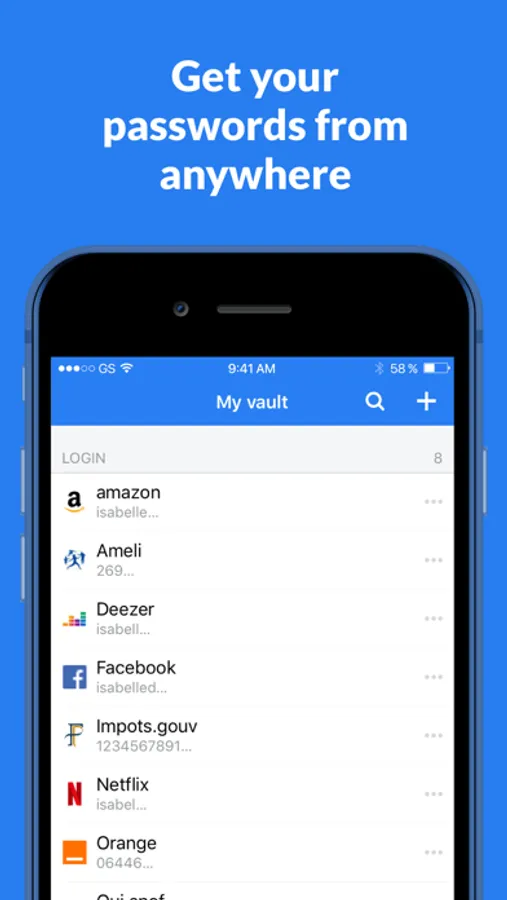Your passwords will be saved once and for all in your 100% personal and secured safe that you can access from your mobile thanks to the Cozy Pass app.