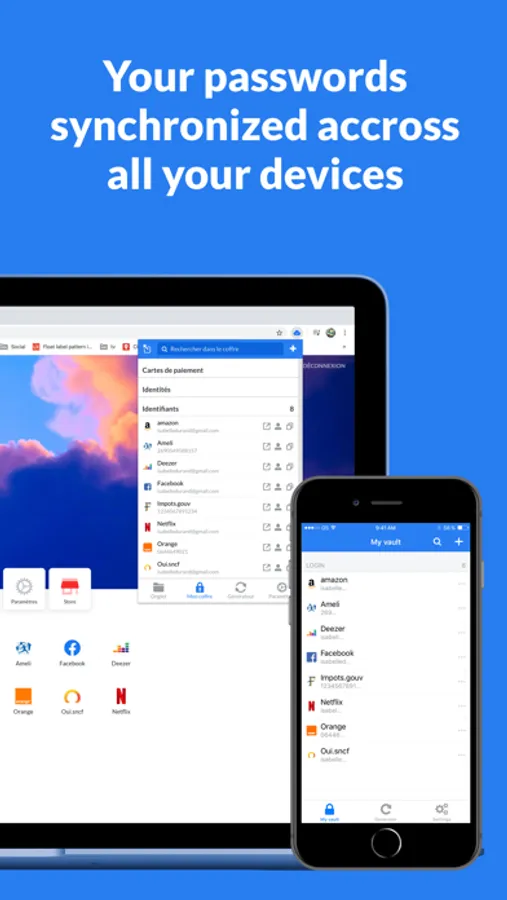 Cozy Pass ensures that your credentials are always up to date accross your different devices. Data is synchronized between the mobile app and the add-on on your computer browsers.