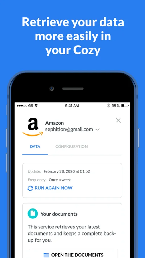 You can connect your brands to your Cozy to recover your data in the blink of an eye. Cozy Pass will highlight brands that can be synchronized to your Cozy and make it easier to connect them. Whenever your credentials are edited, Cozy Pass will be able to be updated and secure the synchronization automatically.
