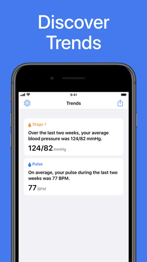 Just enter a time period to share your blood pressure data via Mail, Messages or any other app.